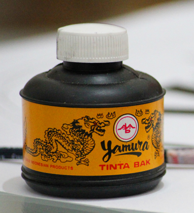 Terbuat dari arang halus, sifatnya hitam pekat dan agak sulit dihapus.